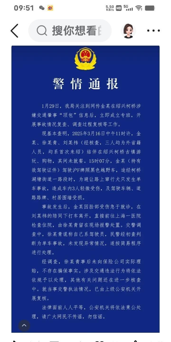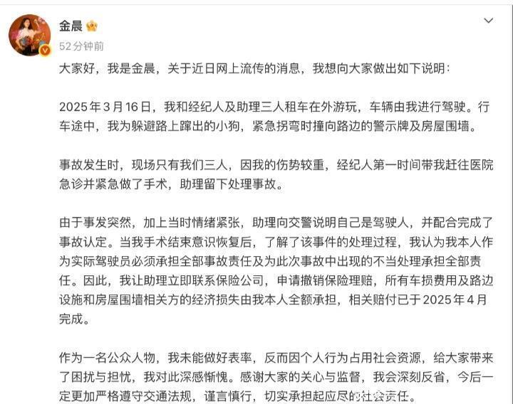 再看细节:金晨道歉信里说‘当时太慌张才找人帮忙’,警方通报却显示‘只是轻微刮擦没逃逸’——这俩说法差得有点远啊!(放大声)难道狗仔手里真有实锤?还是团队想用‘警方背书’洗白,结果反而露了马脚?”