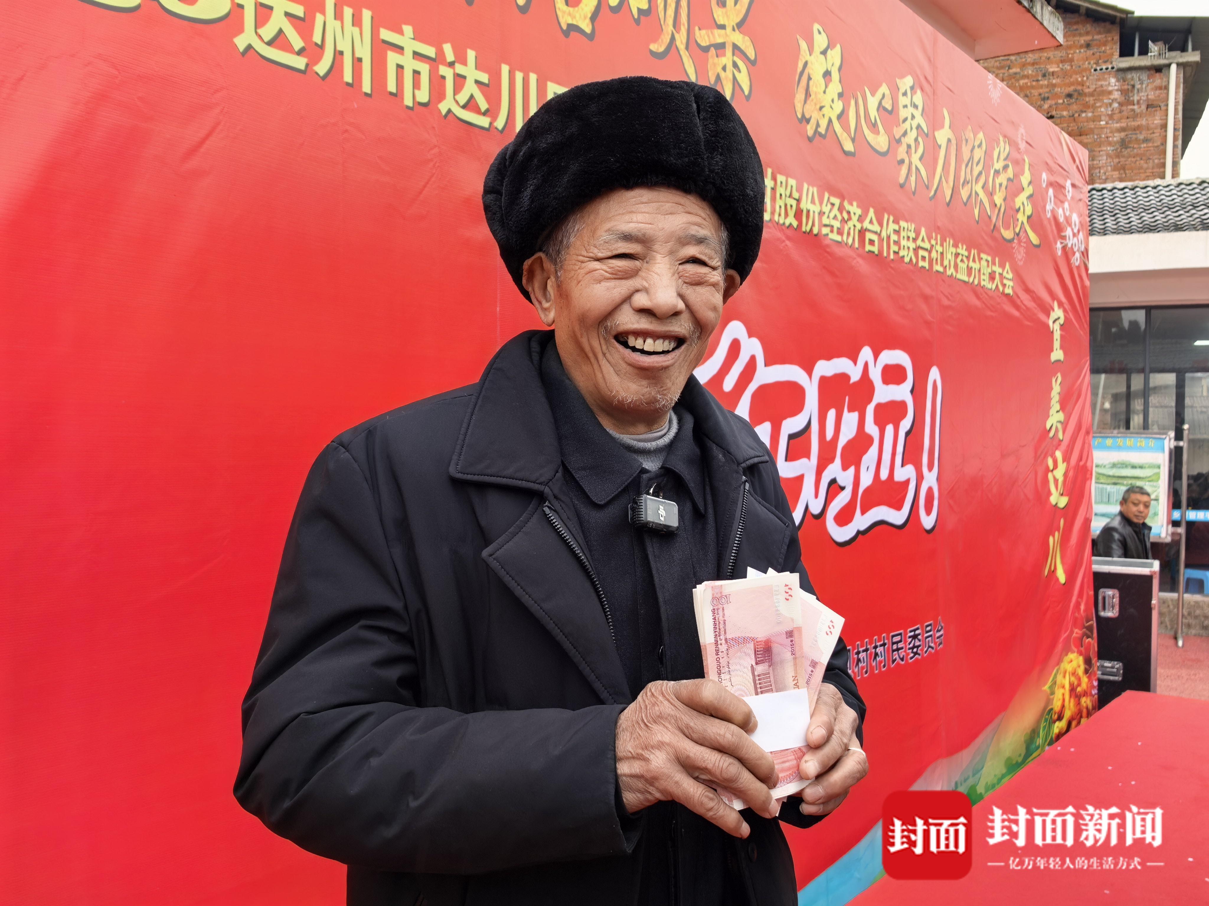 当天,全村村民齐聚一堂,吃坝坝宴、看文艺表演、享免费体检,在欢声笑语中接过分红款,一张张笑脸,映照乡村幸福图景。
