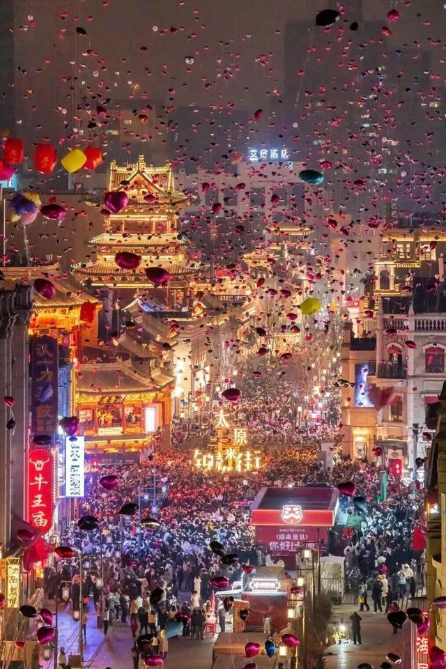 在空间氛围营造上,将非遗灯彩、在地纹样与古建街巷肌理有机融合,打造“福熠新笼”新春主题美陈,呈现兼具东方美学与节庆温度的街区新景。夜间灯光亮起后,街区光影流动、游人如织,成为春节期间太原市民与外地游客热门打卡地。
