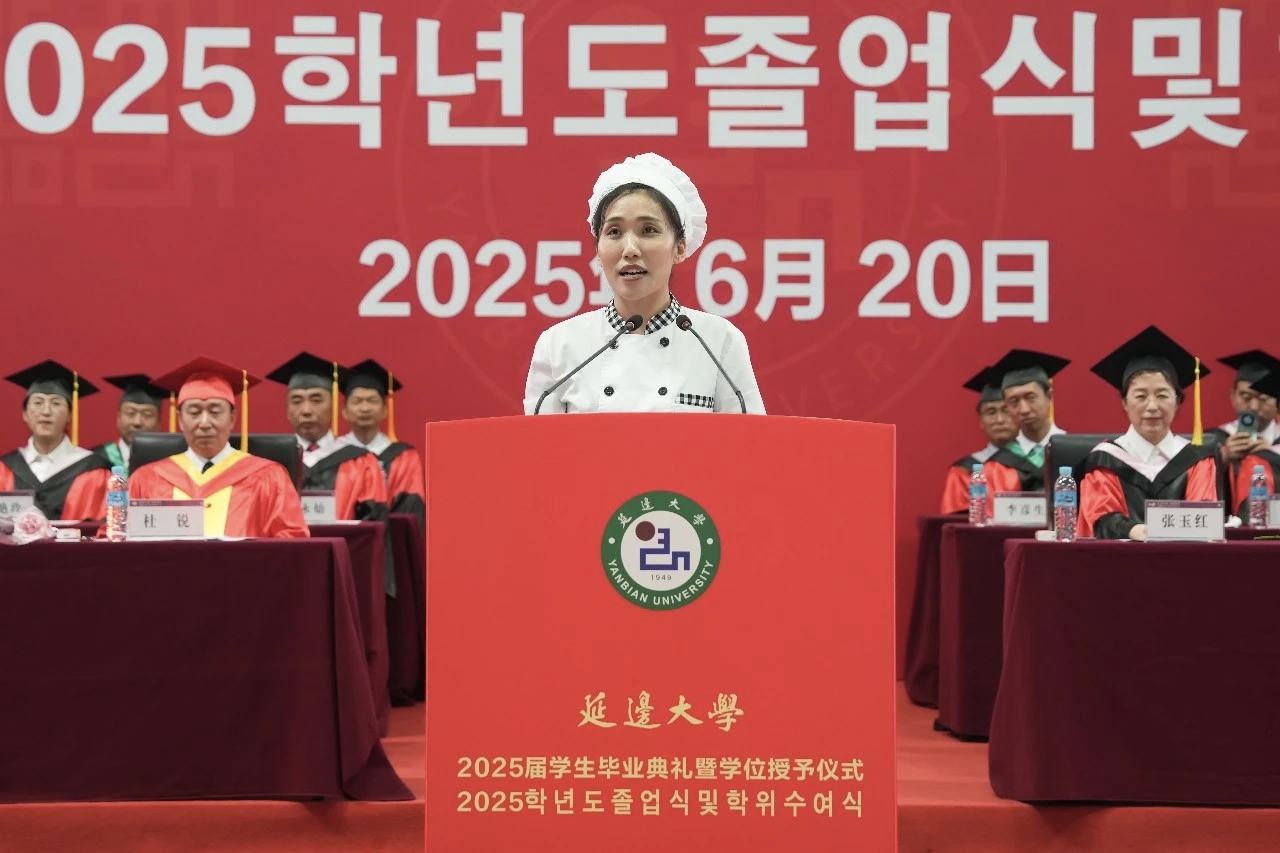 2025年6月,刘晓梅在延边大学毕业典礼发言。